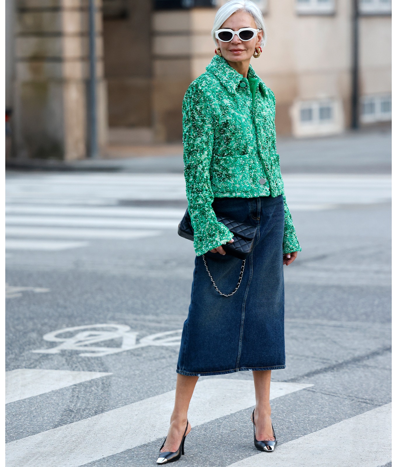 Casual Outfit for 50 Year Old Woman with Green Jacket and Jeans , Want to hear more about me or collaborate? From quiet luxury to denim maxi skirts, leather bags and metallic tops, discover how you can make the most of 2024's autumn winter trends.